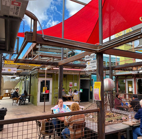 Albuquerque's original shipping container marketplace, Green Jeans Food Hall has something for everyone, featuring the Santa Fe Brewing Co. and eight other local merchants.
